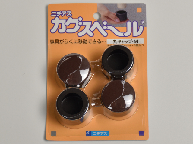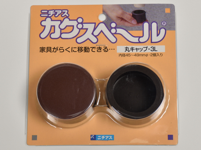 TOP便利グッズ 家具金物 【概要・特長】 家具が楽に移動できます。 フローリングや畳の上でも、キズをつけにくくスムーズな移動が出来ます。 各サイズ4個入り (3Lは2個入り) 【10個以上なら15%OFF】 ニチアス カグスベール 丸キャップ 【10個以上なら15%OFF】 価格: ¥343 (税込) ~ ¥638 (税込) 販売期間: サイズ価格在庫購入SS 内径17〜20mmφ¥343(税込)在庫切れ S 内径21〜24mmφ¥353(税込)在庫切れ M 内径25〜28mmφ¥385(税込)10個 L 内径29〜32mmφ¥486(税込)10個 LL 内径33〜36mmφ¥516(税込)10個 3L 内径45〜49mmφ¥638(税込)在庫切れ 返品についての詳細はこちら 数量: 個 サイズ価格在庫購入SS 内径17〜20mmφ¥343(税込)在庫切れ S 内径21〜24mmφ¥353(税込)在庫切れ M 内径25〜28mmφ¥385(税込)10個 L 内径29〜32mmφ¥486(税込)10個 LL 内径33〜36mmφ¥516(税込)10個 3L 内径45〜49mmφ¥638(税込)在庫切れ