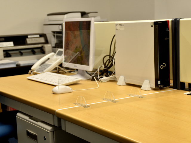 事務所や店舗など、座席間や対面間のパーテーション用スタンド。